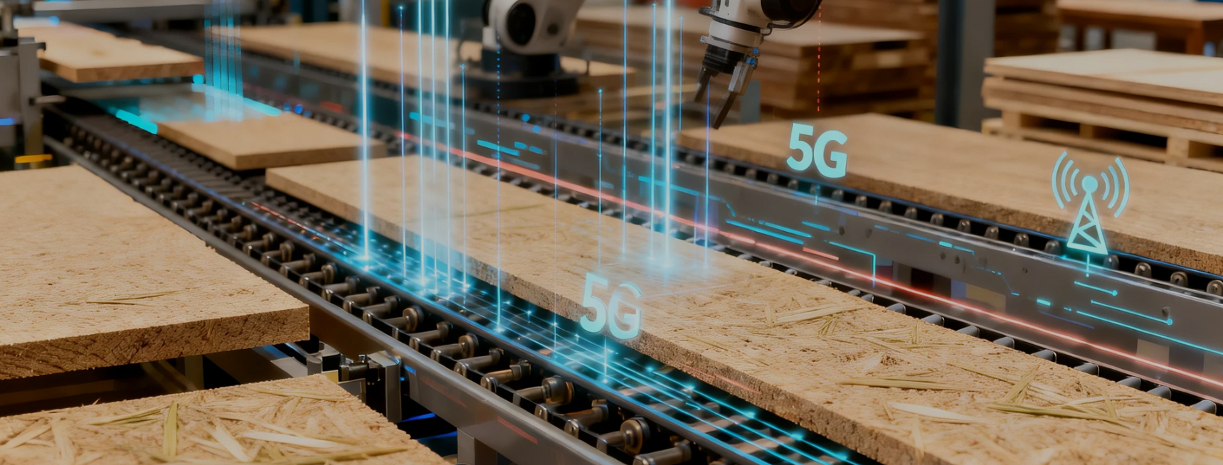 为5G+智慧工厂,5G智能终端可实时观察生产环节,调整参数,确保生产稳定高效运行。
