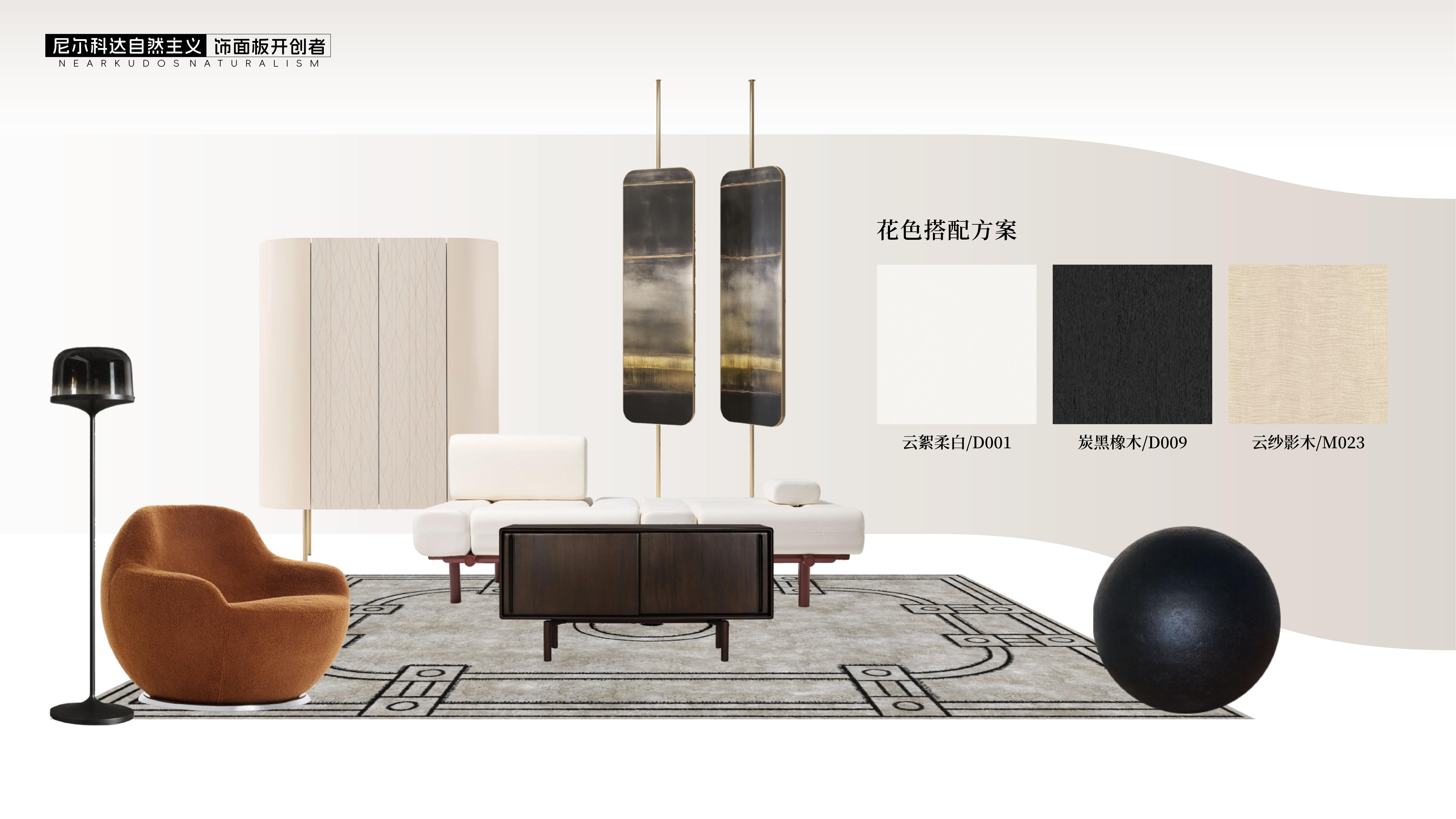云絮柔白/D001 炭黑橡木/D009 云纱影木/M023